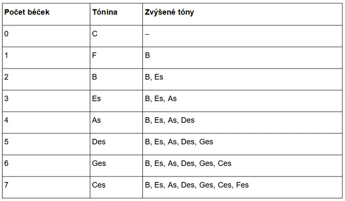 Béčka na začátku skladby určují předznamenání. Stejně jako v případě křížků se pohybuje jak v durových, tak v mollových tóninách. Pořadí béček jde po kvartách směrem nahoru. Do notové osnovy se béčka zapisují vždy na nejvyšší možnou polohu – platí ale pro tóny ve všech oktávách.